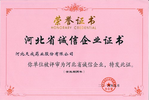 2014年“河北省诚信企业”