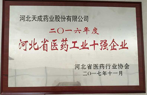 公司获得2017年河北省医药工业十强企业